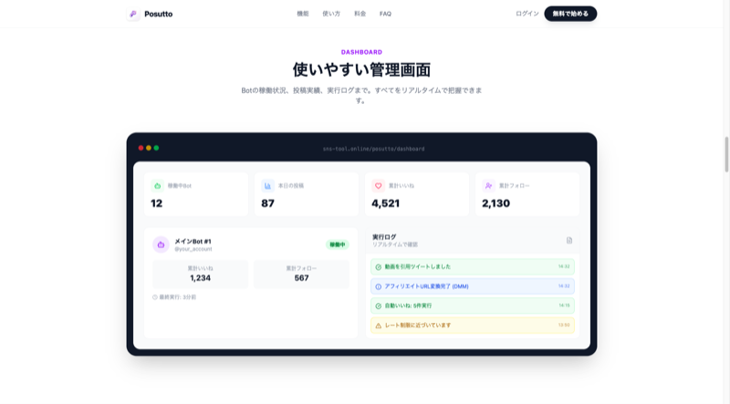 投稿・いいね・フォロー・アフィリエイトをすべて自動化。フリープランは永久無料。