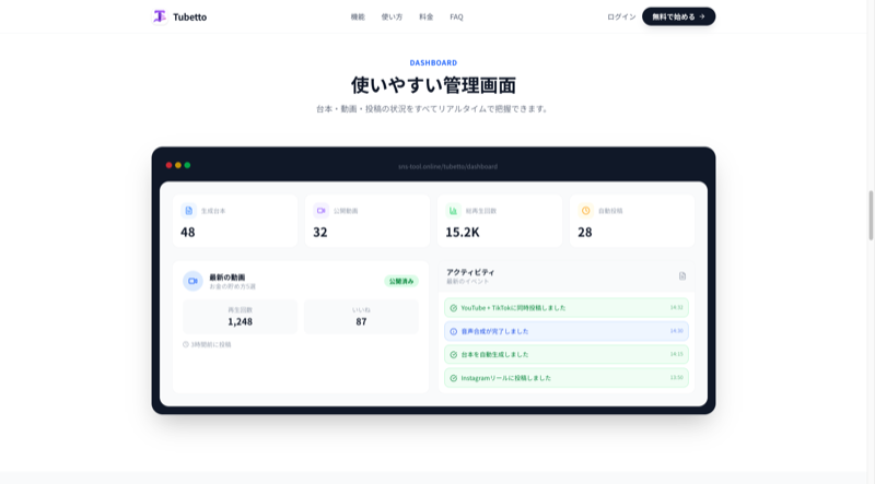 ※ AI台本・音声・動画生成のAPI利用分は別途実費がかかる場合があります。